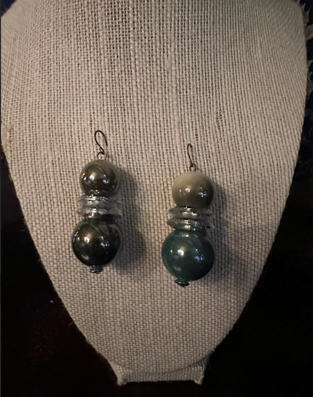 Inspired by Ernest Tubb and work at Pearl's with "the" AJ Lockett of the Ernest Tubb Record shop! These fun blue and green ombre earrings make a bif statement with unique style All proceeds from this auction will support the Marie Duckworth Foundation, dedicated to assisting individuals facing financial hardship while undergoing medical treatment for serious or life-threatening illnesses. Make a meaningful contribution and acquire a beautiful piece of jewelry with a profound impact.