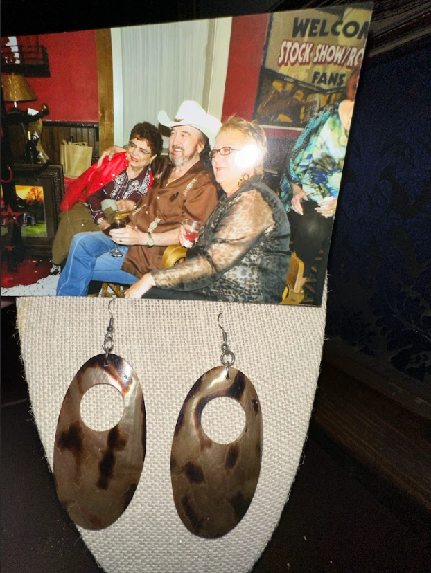"Whiskey River" Leopard Earrings & Picture of Johnny Bush at Pearls