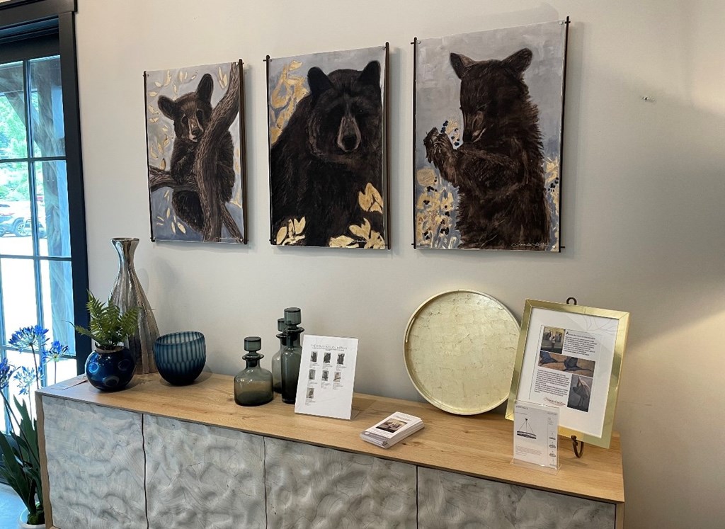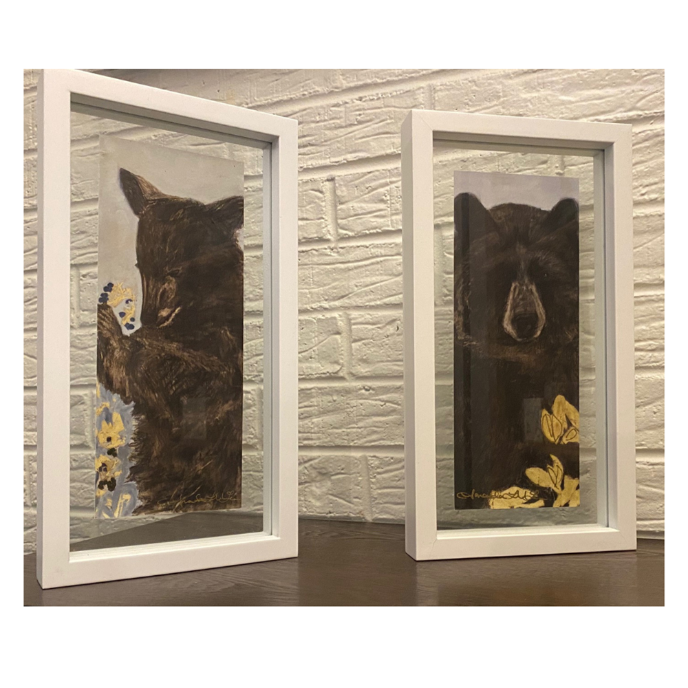 Item Specifications: 2 Framed 7x13 giclee prints High resolution art print (giclee) of McLenon's original triptych of black bears, which sold for $9,000. Amanda McLenon is a conservationist at heart who started her career teaching high school biology. Completely unexpectedly, she began painting in 2009, in reverse on glass, and incorporating maps she had collected over the years. Amanda was quickly recognized for her accurate wildlife paintings and unique style, and in 2012 she received the prestigious Lowcountry Artist of the Year award. To view additional art by Amanda McLenon or learn more about the artist herself, visit https://www.amandamclenon.com
