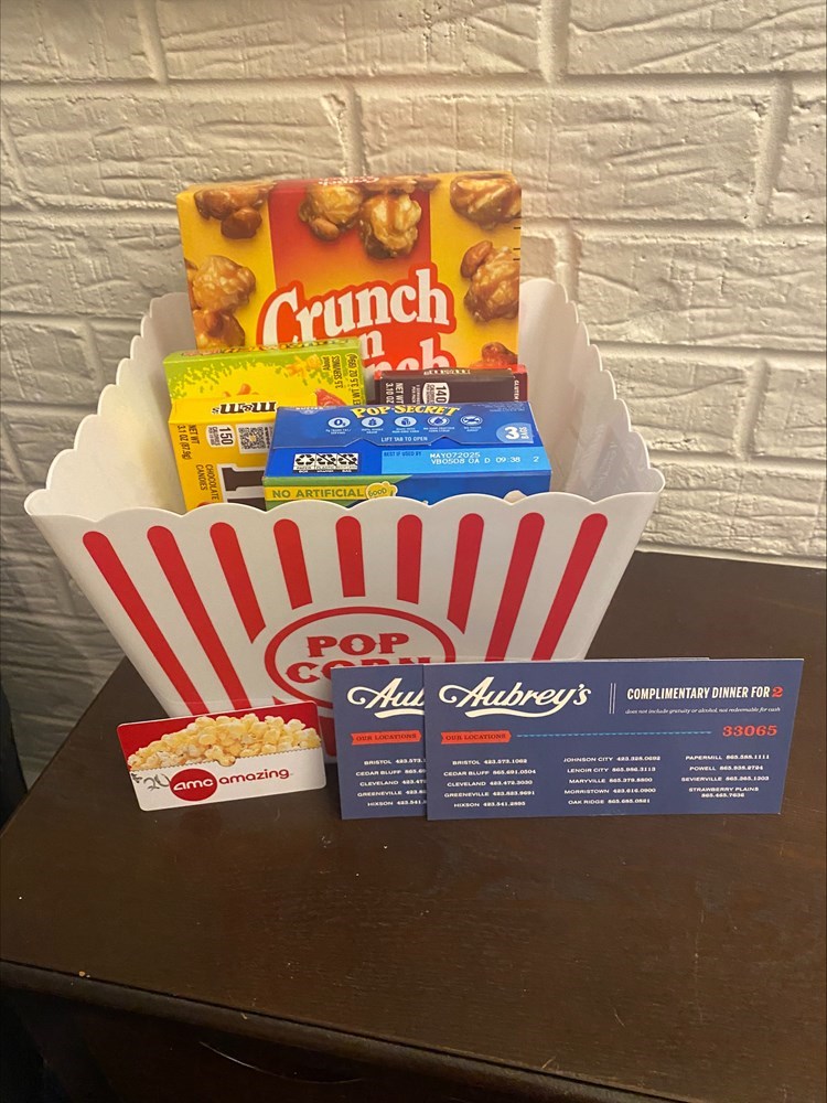 This package includes: Two Complimentary Dinners for 2 Gift Cards to Aubrey's -Each gift card entitles the winner to 2 appetizers, 2 entrees, 2 desserts, & 2 regular beverages $20 Gift Card to AMC Cinemas Movie Snack Bucket