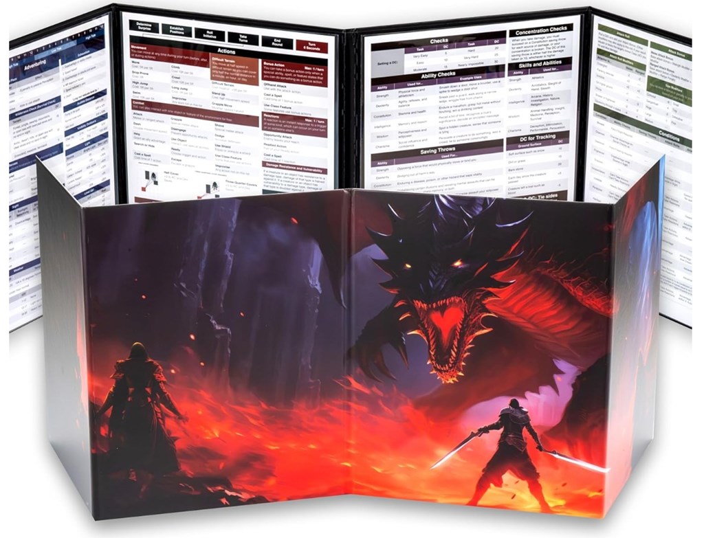 Step into a world of adventure with this Dungeons & Dragons Starter Set Basket, perfect for new players, seasoned adventurers, or anyone ready to dive into epic quests and imaginative storytelling. 🎲 What’s Included: 4‑Panel Dungeon Master Screen (Customizable) A sturdy, customizable DM screen complete with inserts to help any Dungeon Master stay organized and run smooth, immersive sessions. Official D&D Starter Set Box Includes the rulebook and adventure book for the Host, making it easy to jump right into a campaign. Comes with 6 extra sets of colorful dice, 6 matching dice storage bags, and a black flannel drawstring pouch to add a touch of mystery to your game. Printable materials can also be accessed via the included QR code for even more gameplay support. Custom Die Set A unique, eye‑catching set of dice to elevate your rolls and add flair to every encounter.