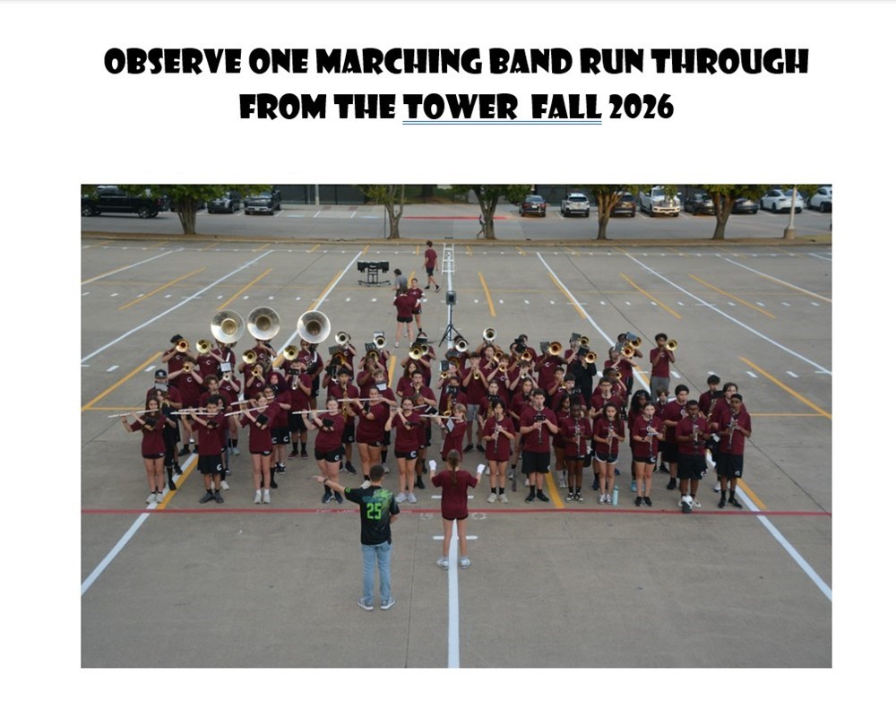 Want the BEST SEAT IN THE HOUSE??? Here's your chance to watch the show run through from the tower! Time and Date to be arranged with the band director