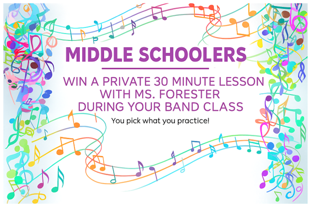 Exclusive Band Experience – Private Lesson with Ms. Forester! 🚨 Calling all Middle School Band Parents! 🚨 🎼 Hendrick Band! Schimelpfenig Band! 🎶 Give your student a chance to level up their musical skills with this one-of-a-kind opportunity! 🎵 One lucky student will win a private 30 minute lesson with Ms. Forester—right in their band class! 🎤 They choose what they want to practice—whether it's mastering a tricky passage, refining their technique, or preparing for an audition. This is their moment to shine! 🌟 🔥 Don't miss this incredible opportunity! Bid now and give your student the gift of expert coaching from the best! 🎶🥁🎷